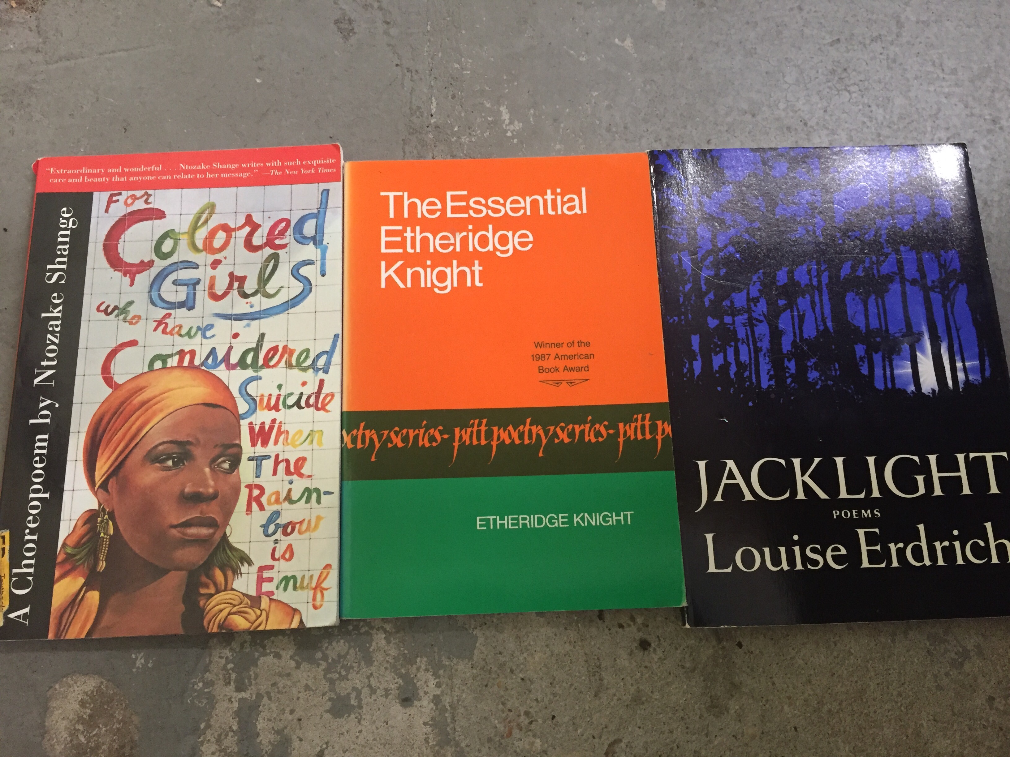 In preparation for my first creative writing course I visited Open Books, a “non-profit, volunteer run book store. Proceeds from the sale of books and donations support the Prison Book Project.” I haven’t given poetry the full attention I should have and knew that the staff there would be able to help me select some important books to familiarize myself before the fall semester. I walked away with three writers that I’m very excited to read. Louise Erdrich, I have heard of. Read her novel The Last Report on the Miracles of Little No Horse years ago. Notzake Shange, I had ‘t heard of but she coined the term choreopoem in 1975. A choreopoem is a combination of poetry, dance, music and song. I have not started reading either book yet. The one I have started is The Essential Etheridge Knight, a collection of Ethridge Knight poems. I had not heard of Etheridge Knight before, but am sure glad I have now. I have not encountered a writer as raw and powerful as this in a long time. The insight into prison life that he experienced is shocking and profound and I’m excited to share this find with my students. Thanks to Scott Satterwhite at Open Books for the recommendations.