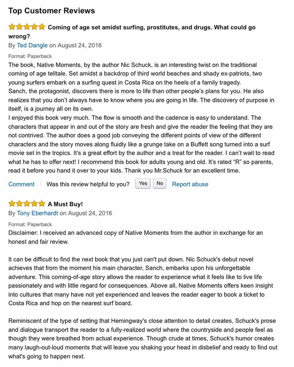 What a great week it’s been. The preorders of Native Moments started getting shipped almost a month early and the first three Amazon reviews have been posted.